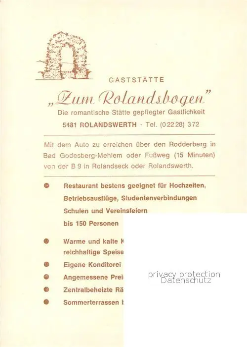 Rolandswerth Gaststaette Zum Rolandsbogen Gastraum Rolandswerth postalisch nicht gelaufen nach 1965 Werbekarte (keine Postkarte) Erhaltung siehe scans [FriedD77] Werbekarte (keine Postkarte) Frierer