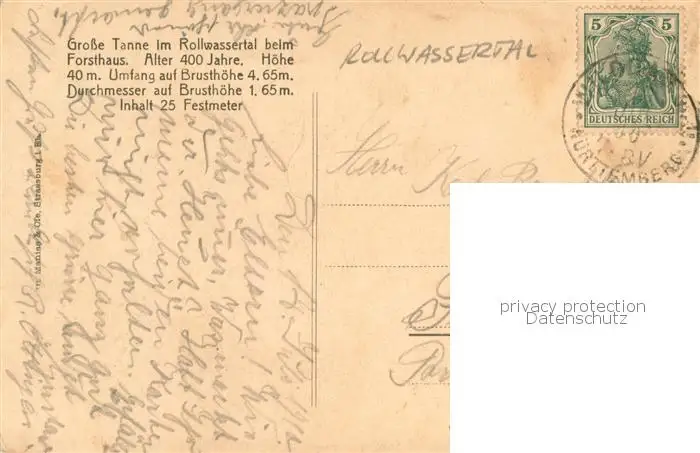 Rollwassertal_Bad_Wildbad Grosse Tanne beim Forsthaus postalisch gelaufen bis 1920 Erhaltung siehe scans [FriedD77] Frierer