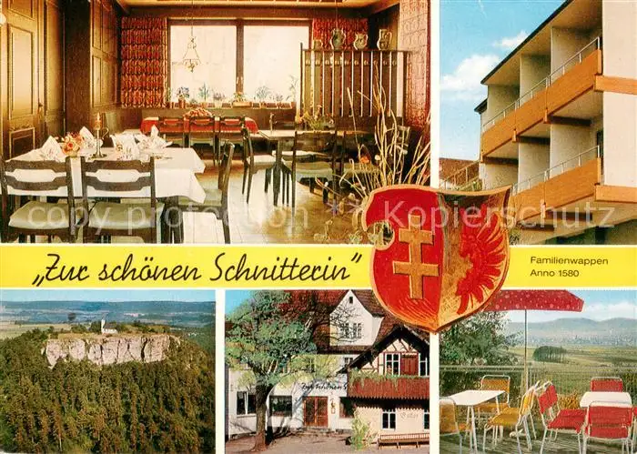 Romansthal_Oberfranken Gasthof Zur schoenen Schnitterin Familienwappen Landschaftspanorama Romansthal_Oberfranken postalisch gelaufen 1979 Erhaltung siehe scans [FriedD77] Frierer
