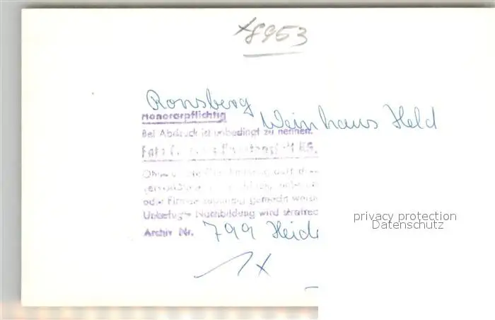 Ronsberg Weinhaus Held Ronsberg postalisch nicht gelaufen 1969 Verlagsrohabzug (keine Postkartenrueckseite) Erhaltung siehe scans [WerneD78] Verlagsrohabzug (keine Postkartenrueckseite) WernPID7