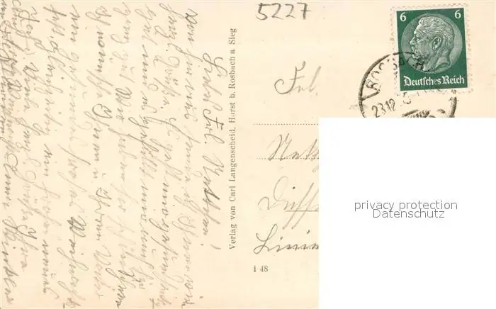 Rosbach_Sieg Auguste Viktoria Stift Rosbach Sieg postalisch gelaufen 1921-1965 Erhaltung siehe scans [WerneD78] WernPID7