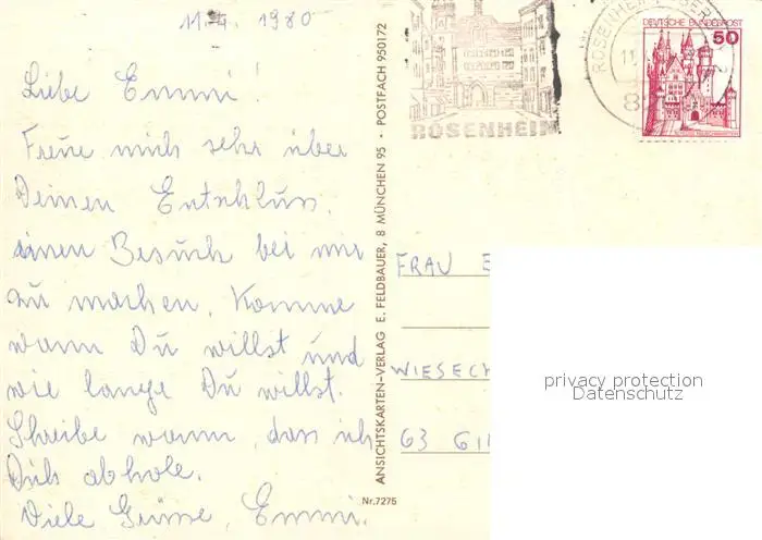 Rosenheim_Bayern Stadtbild mit Alpenpanorama Motive Innenstadt Rosenheim Bayern postalisch gelaufen 1980 Erhaltung siehe scans [FriedD77] Frierer