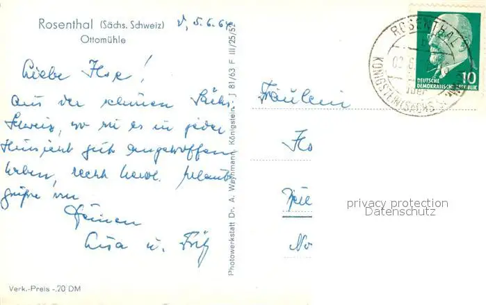 Rosenthal-Bielatal Ottomuehle Rosenthal-Bielatal postalisch gelaufen 1964 Erhaltung siehe scans [WerneD78] WernPID7