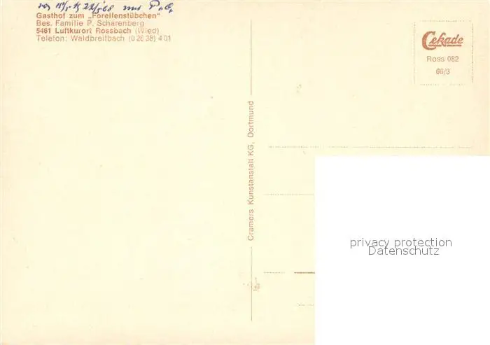 Rossbach_Wied Gasthof zum Forellenstuebchen Gastraeume Rossbach Wied postalisch nicht gelaufen nach 1965 Erhaltung siehe scans [WerneD78] WernPID7