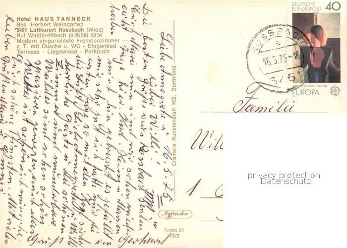 Rossbach_Wied Hotel Haus Tanneck Rossbach Wied postalisch gelaufen 1975 Erhaltung siehe scans [KathaD81] Kathoren