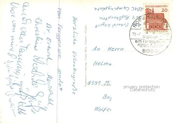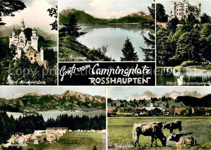 Rosshaupten_Forggensee Campingplatz Landschaftspanorama Alpen Schloesser Viehweide Rosshaupten Forggensee postalisch gelaufen 1967 Erhaltung siehe scans [FriedD77] Frierer