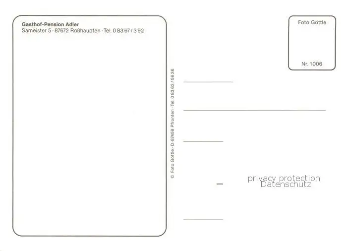Rosshaupten_Forggensee Gasthof Pension Adler Rosshaupten Forggensee postalisch nicht gelaufen nach 1965 Erhaltung siehe scans [WerneD78] WernPID7