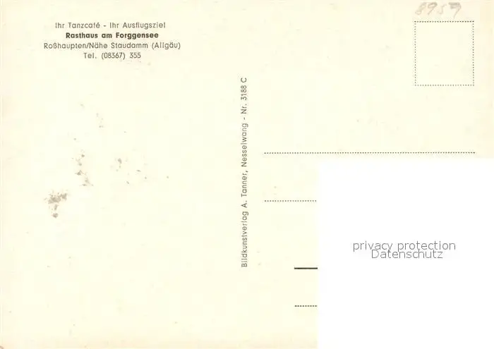 Rosshaupten_Forggensee Rasthaus am Forggensee Rosshaupten Forggensee postalisch nicht gelaufen nach 1965 Erhaltung siehe scans [WerneD78] WernPID7