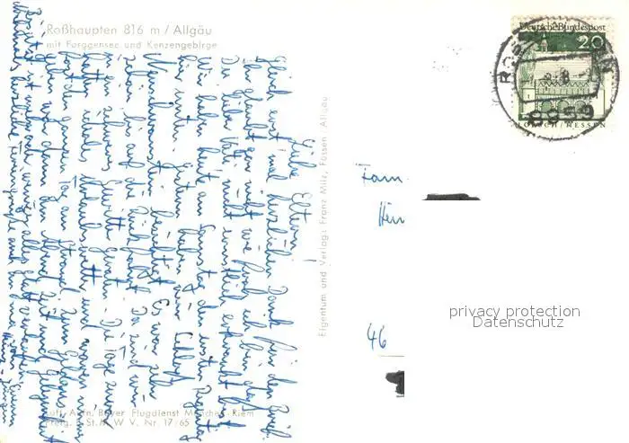 Rosshaupten_Forggensee mit Kenzengebirge Fliegeraufnahme Rosshaupten Forggensee postalisch gelaufen nach 1965 Erhaltung siehe scans [WerneD78] WernPID7