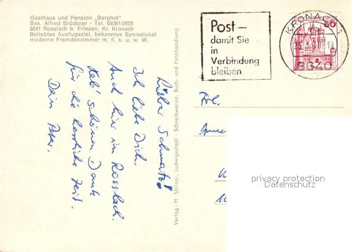 Rosslach Gasthaus Pension Berghof Rosslach postalisch gelaufen 1979 Erhaltung siehe scans [FriedD77] Frierer