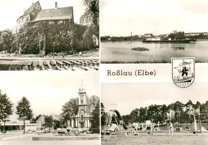 AK / Ansichtskarte Rosslau_Elbe An der Burg Elbepartie Schwimmbad Schillerplatz Rosslau_Elbe