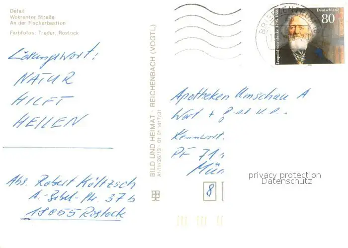Rostock Detail Wokrenter Strasse An der Fischerbastion postalisch gelaufen 1996 Erhaltung siehe scans [WerneD78] WernPID7
