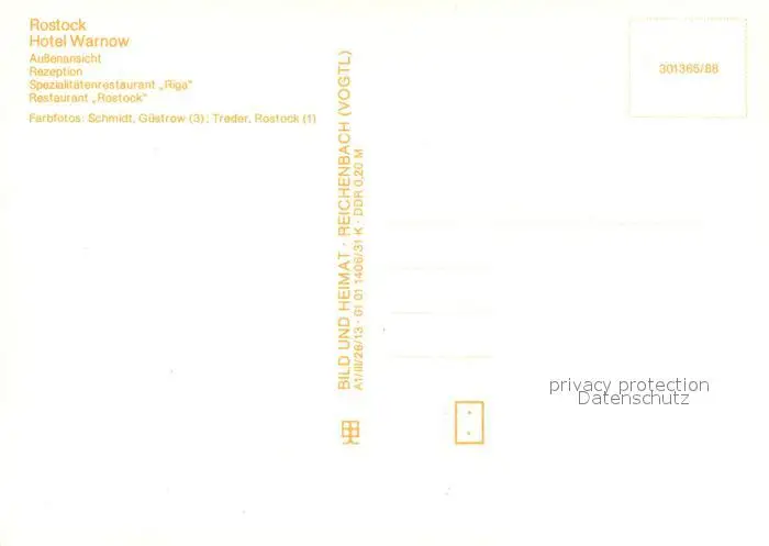 Rostock Hotel Warnow Rezeption Spezialitaetenrestaurant Riga Restaurant Rostock postalisch nicht gelaufen nach 1965 Erhaltung siehe scans [WerneD78] WernPID7