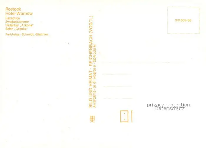 Rostock Hotel Warnow Rezeption Zweibettzimmer Hallenbar Arkona Salon Granitz postalisch nicht gelaufen nach 1965 Erhaltung siehe scans [WerneD78] WernPID7