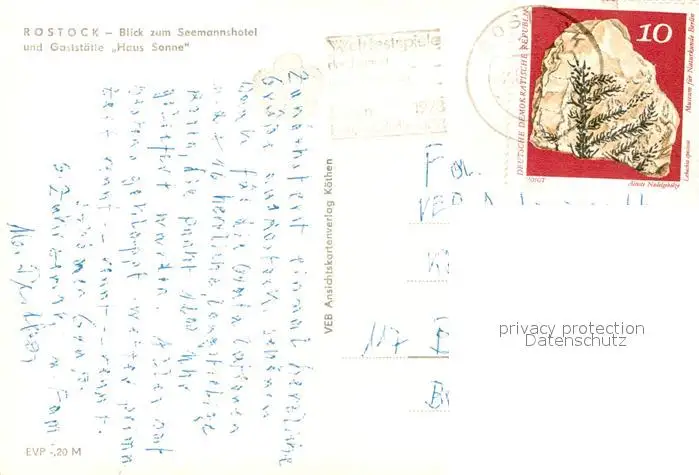 Rostock_Mecklenburg-Vorpommern Seemannshotel Restaurant Haussonne Rostock postalisch gelaufen 1973 Erhaltung siehe scans [LiesaD40] LiesID40