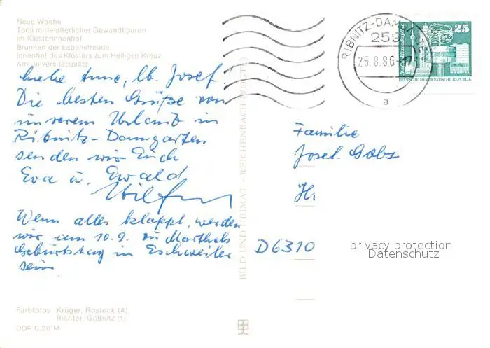Rostock_Mecklenburg-Vorpommern Universitaetsplatz Neue Wache Klosterinnenhof Rostock postalisch gelaufen 1986 Erhaltung siehe scans [NatalD47] NataID47