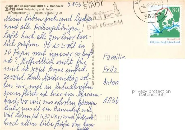 Rotenburg_Fulda Haus der Begegnung Haupthaus Tagungshaus Schwimmbadhaus Essraum Rotenburg Fulda postalisch gelaufen 1995 Erhaltung siehe scans [WerneD78] WernPID7