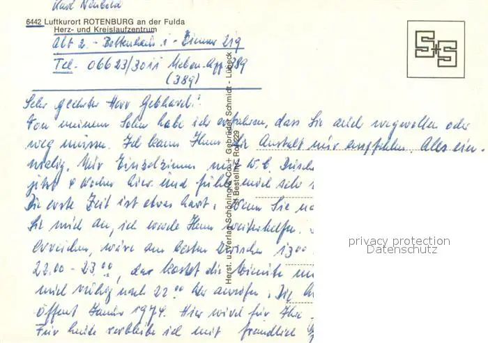 Rotenburg_Fulda Herz und Kreislaufzentrum Freizeithalle Bewegungsbad Treffpunkt Speisesaal Phonoraum Foyer Schlosspark Schloss Ladenstrasse Rotenburg Fulda postalisch nicht gelaufen nach 1965 Erhaltung siehe scans [WerneD78] WernPID7