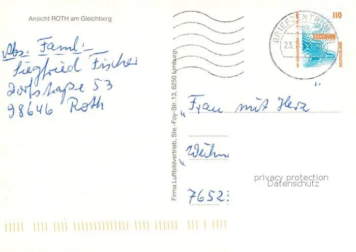 Roth_Gleichamberg Kategorie Alte Ansichtskarten Postkarten bx93170 Roth_Gleichamberg Fliegeraufnahme postalisch gelaufen nach 1965 Erhaltung siehe scans [WerneD78]