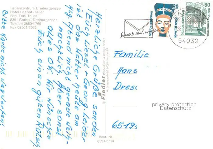 Rothau_Dreiburgensee Hotel Seehof-Tauer Ferienzentrum Dreiburgensee Tittling Museumsdorf Salenburg Englburg Fuerstenstein postalisch gelaufen 1997 Erhaltung siehe scans [FriedD77] Frierer