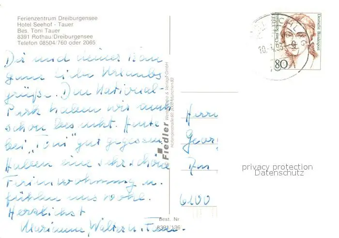 Rothau_Tittling Ferienzentrum Dreiburgensee Hotel Seehof Tauer Rothau Tittling postalisch gelaufen 1993 Erhaltung siehe scans [WerneD78] WernPID7