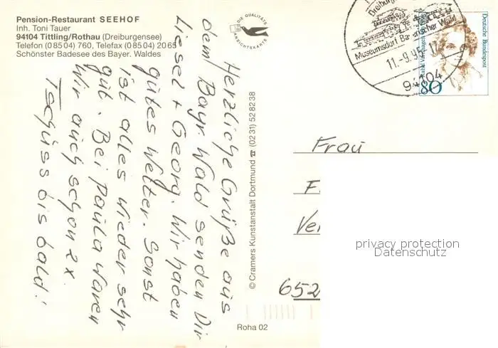 Rothau_Tittling Pension Restaurant Seehof Dreiburgensee Fliegeraufnahme Rothau Tittling postalisch gelaufen 1995 Erhaltung siehe scans [WerneD78] WernPID7