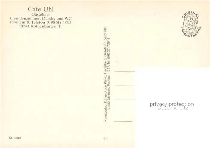 Rothenburg_Tauber Café Uhl Gaestehaus Fremdenzimmer Altstadt Panorama Rothenburg Tauber postalisch nicht gelaufen nach 1965 Erhaltung siehe scans [FriedD77] Frierer