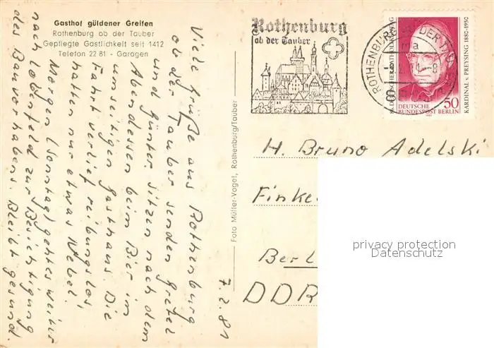 Rothenburg_Tauber Gasthof gueldener Greifen Rothenburg Tauber postalisch gelaufen 1981 Erhaltung siehe scans [WerneD78] WernPID7