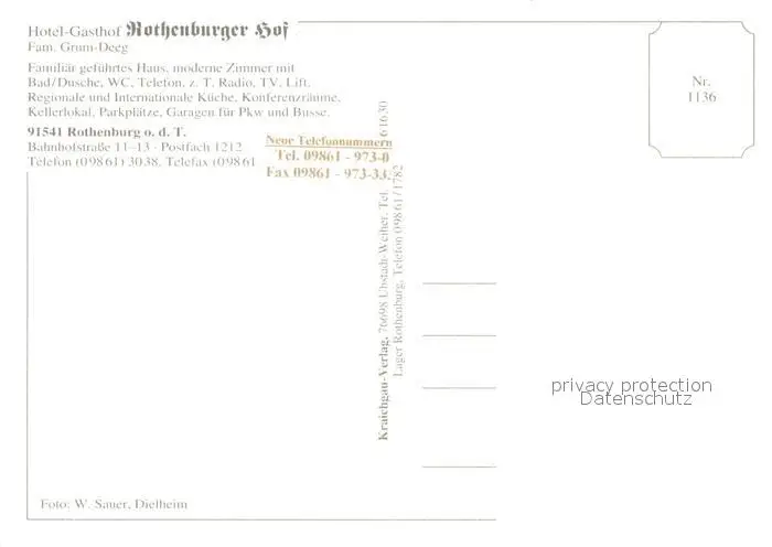 Rothenburg_Tauber Hotel Gasthof Rothenburger Hof Fremdenzimmer Restaurant Wappen Rothenburg Tauber postalisch nicht gelaufen nach 1965 Erhaltung siehe scans [FriedD77] Frierer