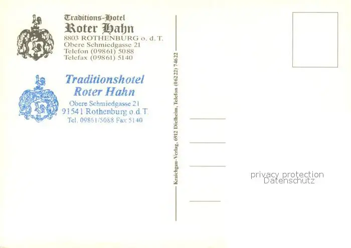Rothenburg_Tauber Traditionshotel Roter Hahn Rezeption Zimmer Rothenburg Tauber postalisch nicht gelaufen nach 1965 Erhaltung siehe scans [WerneD78] WernPID7