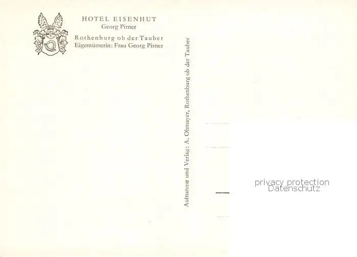 Rothenburg__Tauber Hotel Eisenhut postalisch nicht gelaufen nach 1965 Erhaltung siehe scans [FriedD77] Frierer
