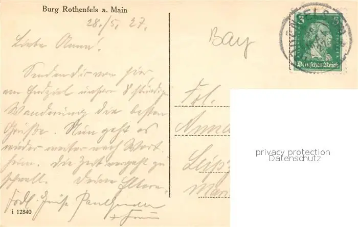 Rothenfels_Unterfranken Stadtbild mit Kirche Blick zur Burg Rothenfels Rothenfels Unterfranken postalisch gelaufen 1927 Erhaltung siehe scans [FriedD77] Frierer