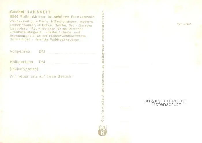 Rothenkirchen_Oberfranken Gasthof Hansveit Rothenkirchen Oberfranken postalisch nicht gelaufen nach 1965 Erhaltung siehe scans [LiesaD40] LiesID40