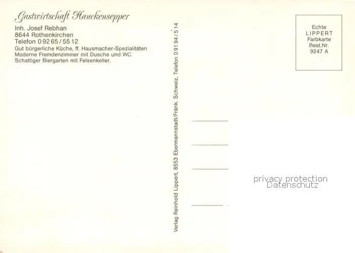 Rothenkirchen_Oberfranken Gastwirtschaft Hauckensepper Rothenkirchen Oberfranken postalisch nicht gelaufen nach 1965 Erhaltung siehe scans [LiesaD40] LiesID40