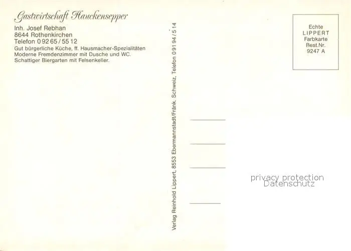Rothenkirchen_Oberfranken Gastwirtschaft Hauckensepper Terrasse Gaststube Zimmer Rothenkirchen Oberfranken postalisch nicht gelaufen nach 1965 Erhaltung siehe scans [WerneD78] WernPID7