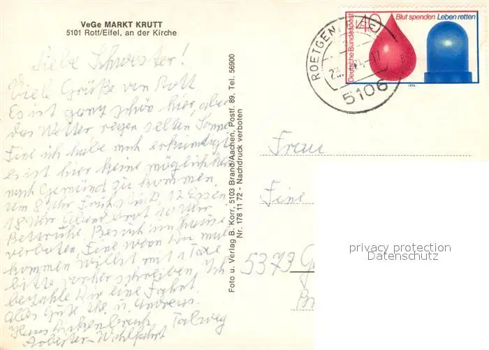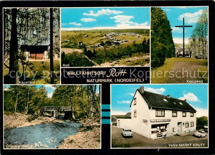 Rott_Eifel Kategorie Alte Ansichtskarten Postkarten bx44355 Rott_Eifel VeGe Markt Krutt Kapelle Kreuzweg Rott_Eifel postalisch gelaufen nach 1965 Erhaltung siehe scans [PaolaD17]