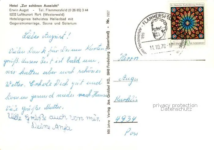 Rott_Westerwald Hotel Zur schoenen Aussicht Hallenbad Rott_Westerwald postalisch gelaufen 1978 Erhaltung siehe scans [WerneD78] WernPID7
