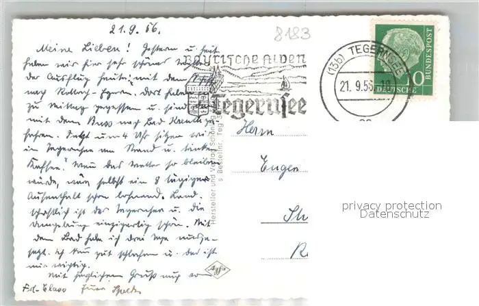 Rottach-Egern Badesteg am Tegernsee Kahnfahrt Alpen Rottach-Egern postalisch gelaufen 1956 Erhaltung siehe scans [FriedD77] Frierer