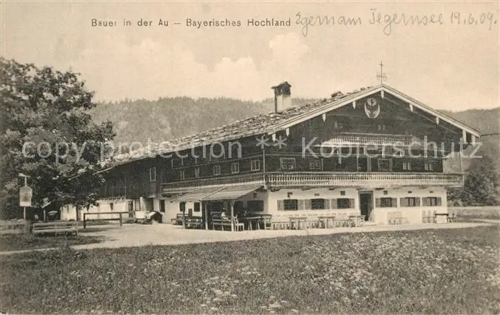 Rottach-Egern Bauer in der Au Bauernhaus Bayerisches Hochland Rottach-Egern postalisch gelaufen 1909 Erhaltung siehe scans [FriedD77] Frierer