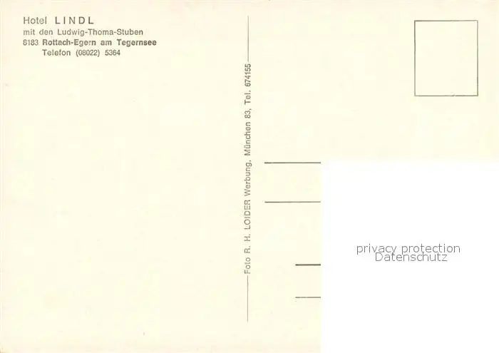 Rottach-Egern Hotel Lindl mit den Ludwig Thoma Stuben Rottach-Egern postalisch nicht gelaufen nach 1965 Erhaltung siehe scans [WerneD78] WernPID7