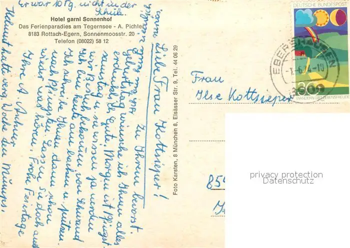 Rottach Egern Kategorie Alte Ansichtskarten Postkarten bx50162 Rottach Egern Hotel garni Sonnenhof Liegewiese am Tegernsee Alpen Rottach Egern postalisch gelaufen 1974 Erhaltung siehe scans [FriedD77]