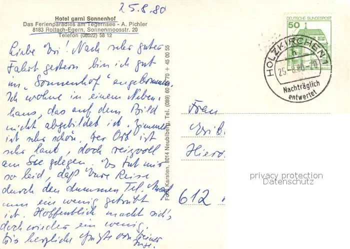 Rottach Egern Kategorie Alte Ansichtskarten Postkarten bx74016 Rottach Egern Hotel garni Sonnenhof Rottach Egern postalisch gelaufen 1980 Erhaltung siehe scans [PaolaD17]