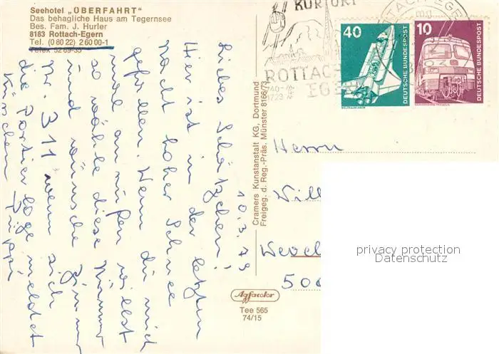Rottach-Egern Seehotel ueberfahrt am Tegernsee Alpenpanorama Rottach-Egern postalisch gelaufen 1979 Fliegeraufnahme Erhaltung siehe scans [FriedD77] Fliegeraufnahme Frierer