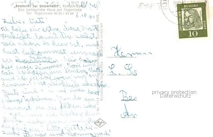 Rottach-Egern Seehotel zur ueberfahrt Tegernsee Rottach-Egern postalisch gelaufen 1962 Erhaltung siehe scans [WerneD78] WernPID7