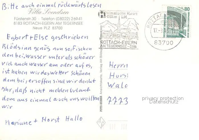 Rottach-Egern Villa Svendsen Aussenansicht Rottach-Egern postalisch gelaufen 1993 Erhaltung siehe scans [LiesaD40] LiesID40