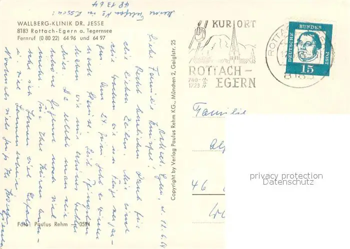 Rottach-Egern Wallberg Klinik Dr Jesse Rottach-Egern postalisch gelaufen 1964 Erhaltung siehe scans [WerneD78] WernPID7