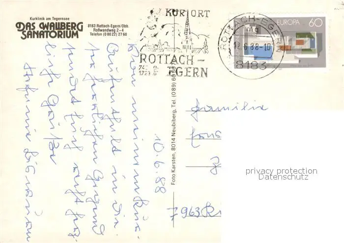Rottach-Egern Wallberg Sanatorium Details Rottach-Egern postalisch gelaufen 1988 Erhaltung siehe scans [WerneD78] WernPID7