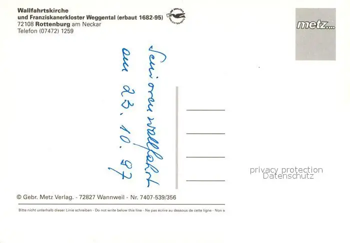 Rottenburg_Neckar Wallfahrtskirche Inneres Stadtblick Rottenburg Neckar postalisch nicht gelaufen nach 1965 Erhaltung siehe scans [WerneD78] WernPID7