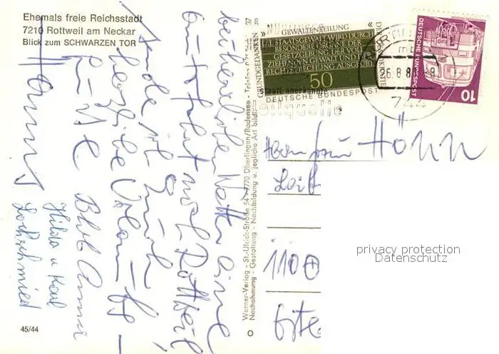 Rottweil_Neckar Blick zum Schwarzen Tor Tuerschild Rottweil Neckar postalisch gelaufen 1981 Erhaltung siehe scans [FriedD77] Frierer