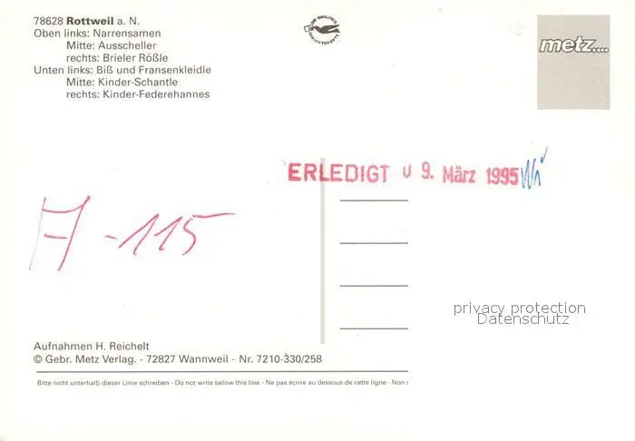 Rottweil_Neckar Fasnet Masken Narrensprung Rottweil Neckar postalisch nicht gelaufen 1995 Erhaltung siehe scans [FriedD77] Frierer